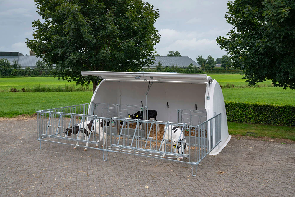 Căsuțele (boxele) pentru viței sunt destinate întreținerii individuale a vițeilor de la naștere până la vârsta de 45–60 de zile. Pot fi instalate atât în aer liber, cât și în interior. Sunt fabricate din polietilenă primară (PE) — un material rezistent, durabil, cu izolație termică ridicată și rezistență la radiațiile ultraviolete, sigur pentru sănătatea animalelor.