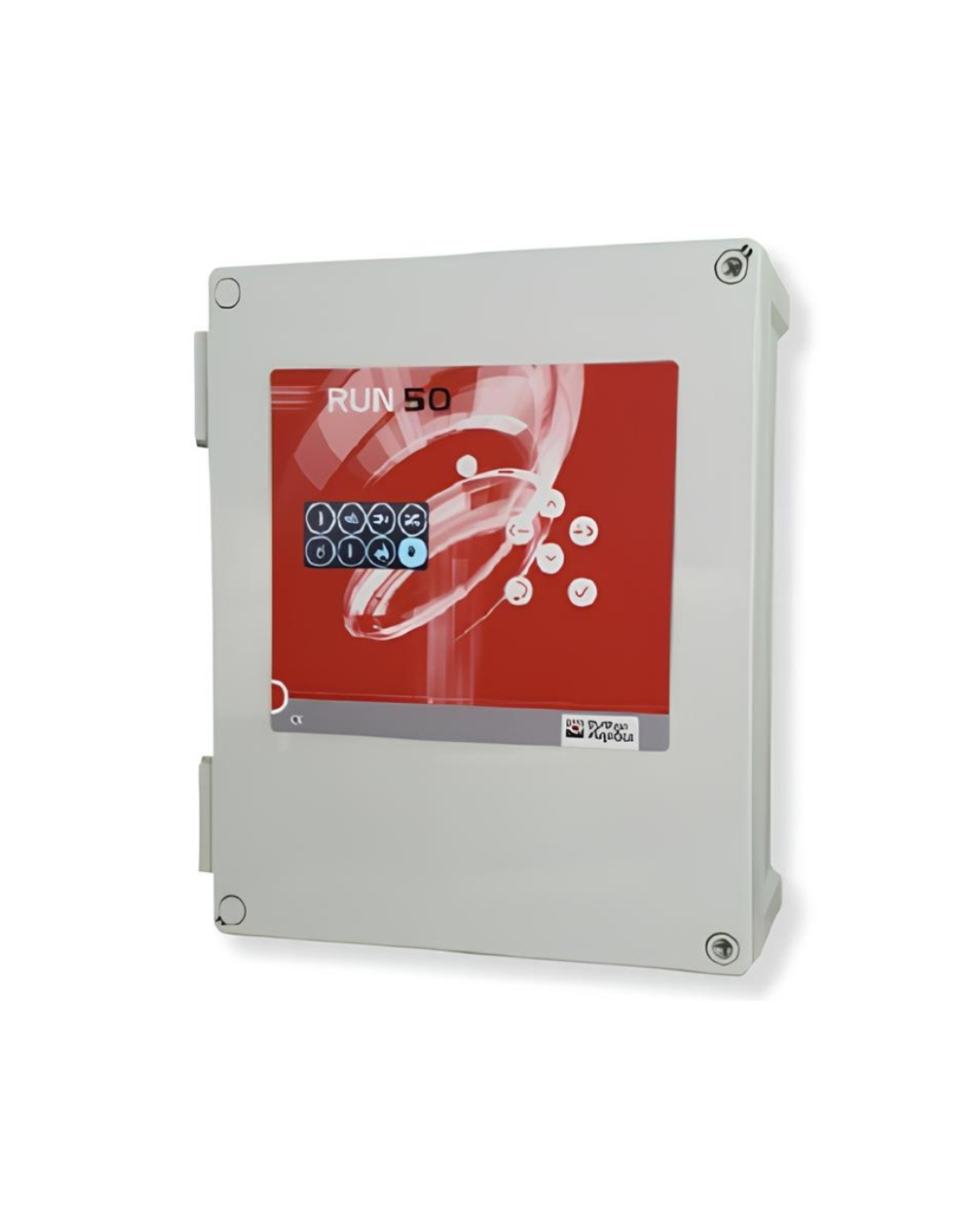Blocul de control Run 50 este destinat reglării microclimatului în spațiile zootehnice industriale (în special în halele pentru păsări și porci). El centralizează măsurătorile (temperatură, umiditate, consum de apă/furaje) și gestionează echipamentele (ventilație, încălzire, iluminat, sistem de răcire, dozarea furajelor). Scopul este de a asigura condiții stabile de întreținere a animalelor, precum și de a analiza datele și de a reacționa prompt la abateri. Este ideal pentru obiective mici sau simple.